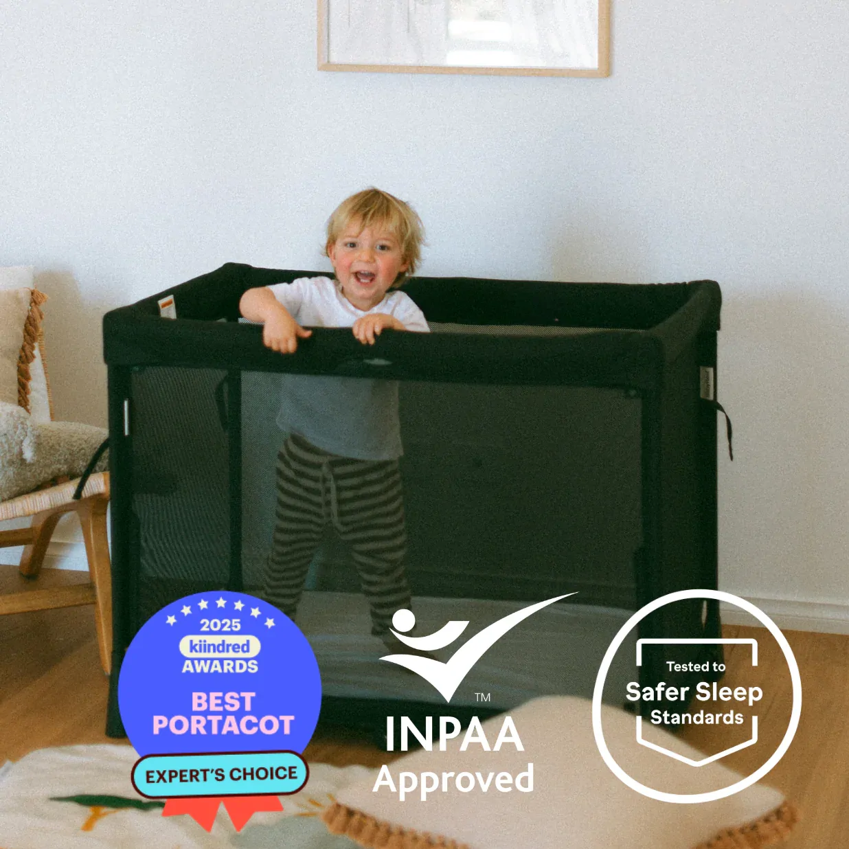 Rest easy knowing your baby is sleeping on our signature Safer Sleep Tested mattress - the first Travel Cot mattress approved for Firmness and CO2 rebreathing.