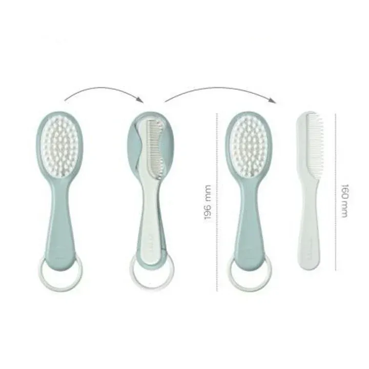 • Very soft nylon bristle hairbrush and comb with rounded teeth, extra gentle on baby’s head