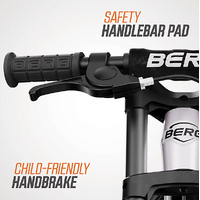 • To prevent any unexpected "flipping over" of the handlebars, the BERG Biky is equipped with a handlebar deflection limiter which can be adjusted to a position for beginners and a position for advanced riders.
