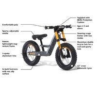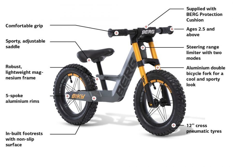 • There are four Biky balance bike models available with a hand brake. This offers extra safety for fast toddlers and preschoolers.