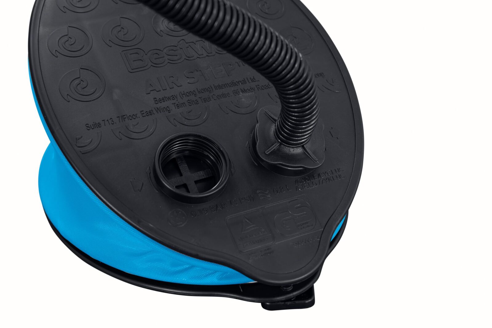 The Bestway® Air Step™ 800 ML Manual Air Pump inflates and deflates tubes, airbeds, rafts, toys and other inflatables. Designed to provide maximum airflow, this pump has a stroke volume of 0.8 L/cycle and features a large air chamber for rapid inflation. It delivers a continuous stream of air on each down stroke (or step). It's great if you don't have access to electricity and times where you need to inflate your items on-the-go. Plus, three universal valve adapters are included to fit nearly every inflation valve, so you're able to inflate a variety of items with the same pump! With its compact design, the Bestway Air Step 800 ML Manual Air Pump is perfect for trips where you need to pack light.