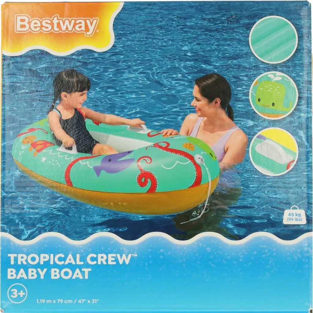 The Happy Crustacean Junior Raft is designed to get kids moving, grooving, and out of the house, for more fun in the sun! The boat features bright sea creatures to add some color to your child's summer escapades and it also includes an inflatable bottom for extra support and comfort.