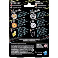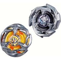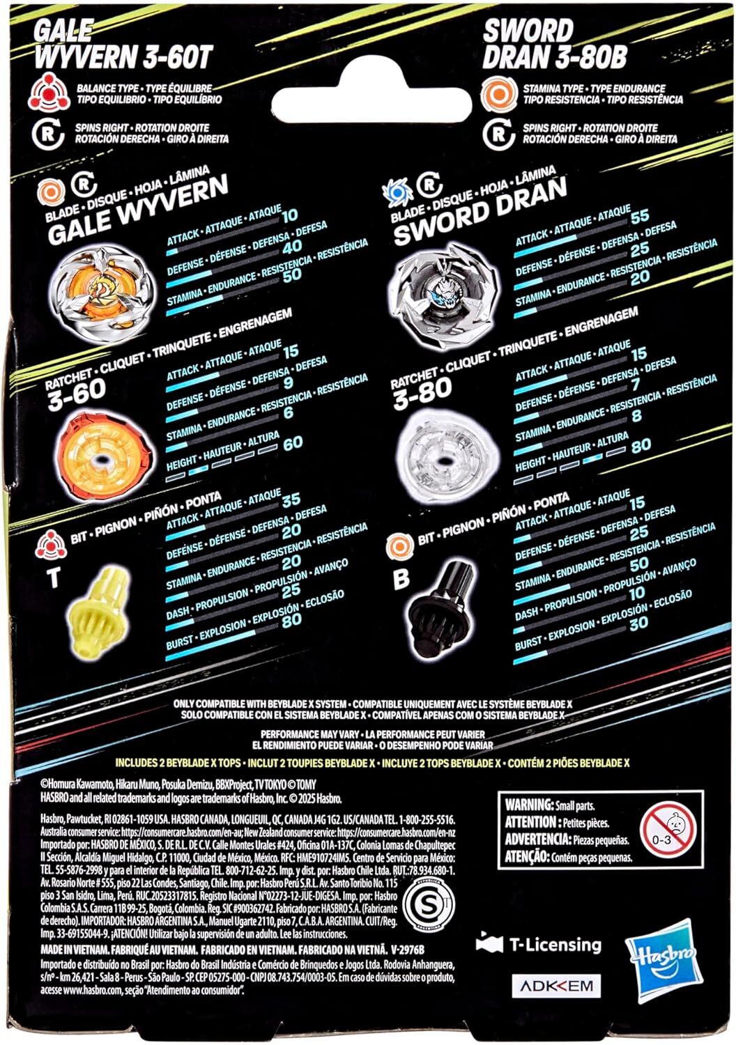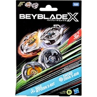 • INTERCHANGEABLE DIE-CAST BLADES: Includes Takara Tomy-designed Beyblade X top with authentic die-cast metal parts: Gale Wyvern 3-60T Right-Spin Balance Type top with Stamina Type Blade and Sword Dran 3-80B Right-Spin Stamina Type top with Attack Type Blade