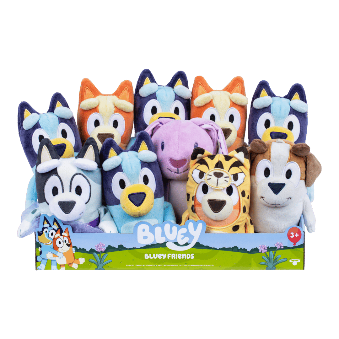 Bluey Friends Plush are great for children to play with and for making up the best games! Now your child can have as much fun as Bluey and Bingo do as they create their own adventures! Bring home the fun and imaginative play of Bluey with the Bluey Friends plush range!