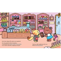 But what sort of cake will she bake? Will she use scrumptious chocolate from Kitty's Candy Store? Sweet strawberries from Bunny's berry patch? Or shiny green apples from Dog's Grocery Store?