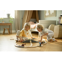The 36079 Starter Travel Train Set is everything you need to create your first train set and begin your BRIO World adventures. The 22-piece railway set features a classic figure 8 track layout with a tunnel and bridge intersection at its centre and a station platform for character play. Place the driver figure at the front of the travel train, pick up the passenger with her luggage waiting at the platform, and begin your trip around BRIO's iconic wooden tracks.