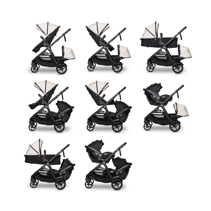 The Britax One2 stroller is designed for easy transition from a single to a tandem stroller as your family grows. It has 4 single configurations and 8 tandem configurations and many adjustments to suit your needs.