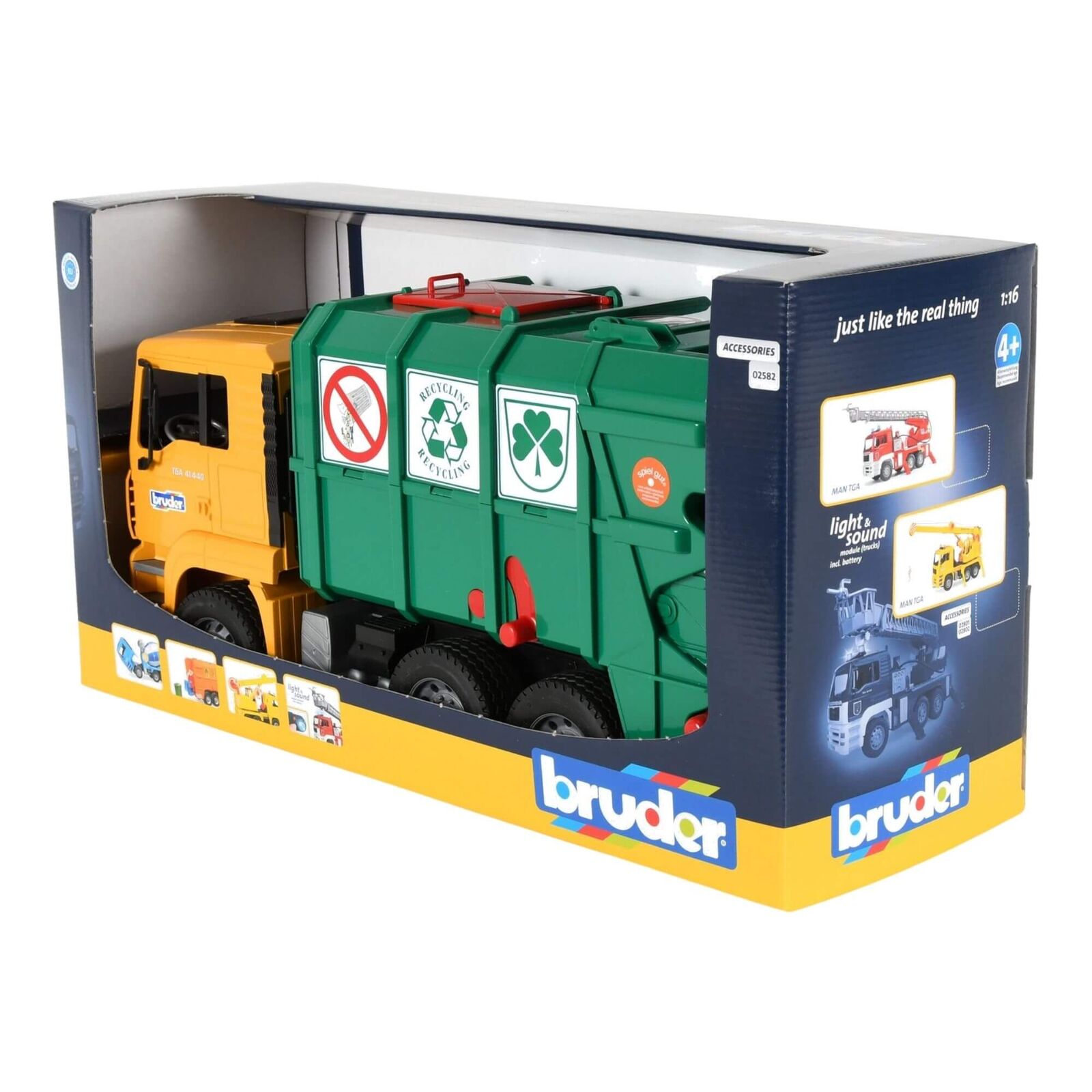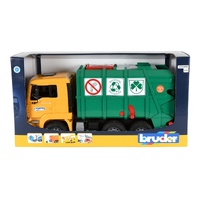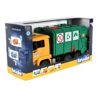 The Bruder MAN TGA Rear Loading Garbage Truck brings realistic waste collection play to life with its bold yellow cab and green recycling body. Designed for hands-on roleplay, this detailed truck lets kids collect, lift, and empty bins just like a real council garbage truck.