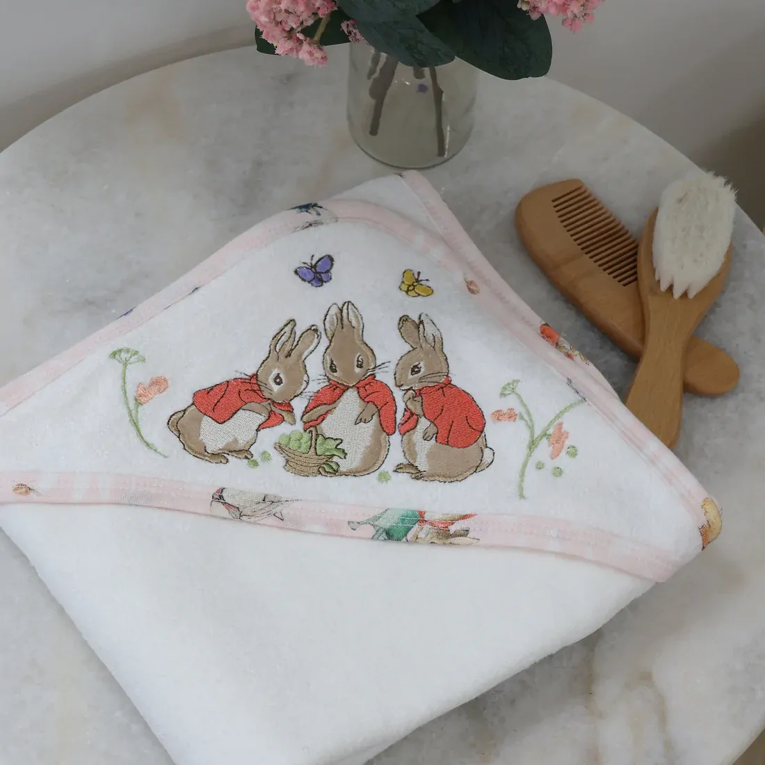This gorgeous embroidered hooded bath towel makes the perfect first towel for baby.