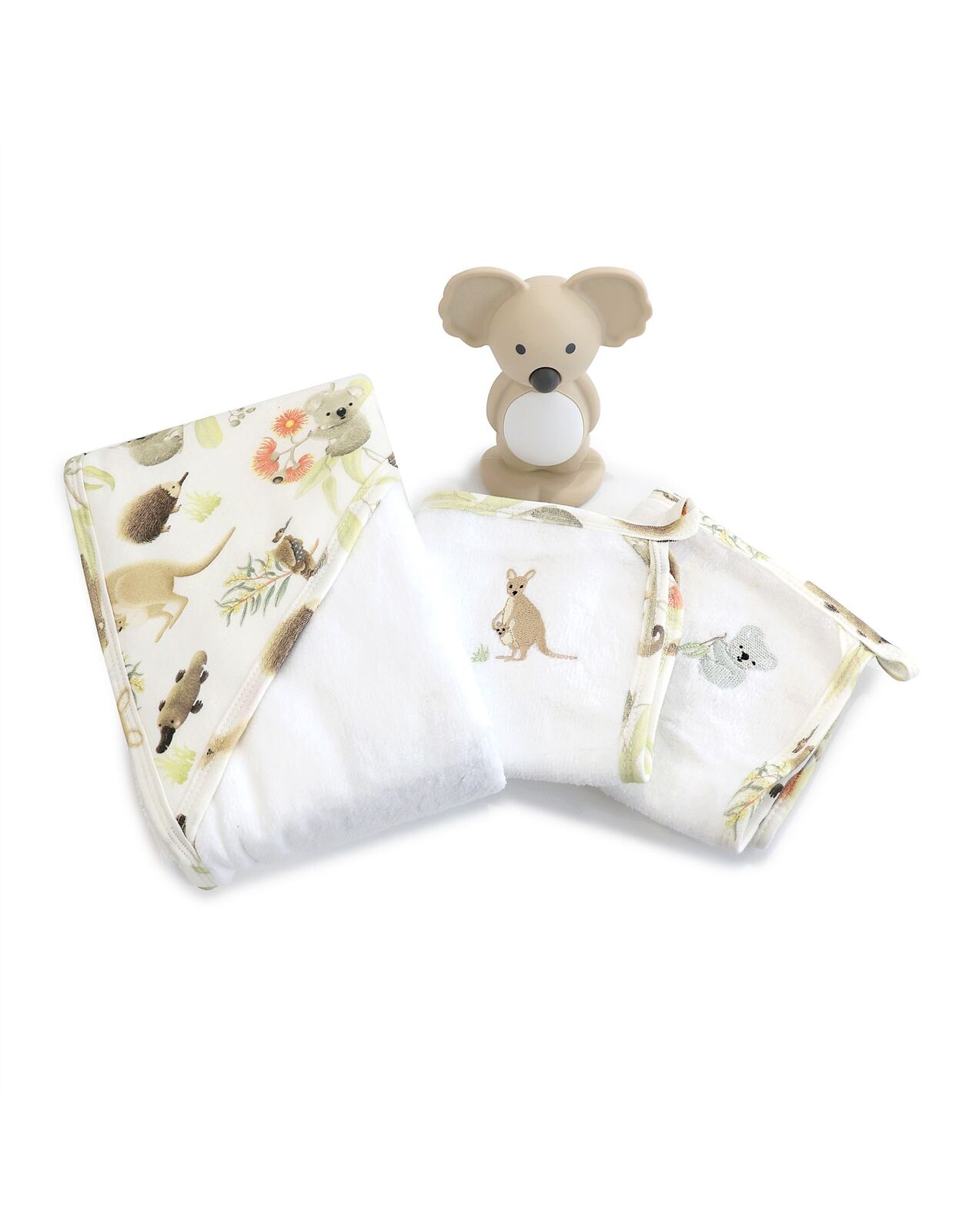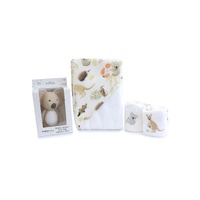1 x hooded towel, 2 x wash cloths, 1 x koala teething toy