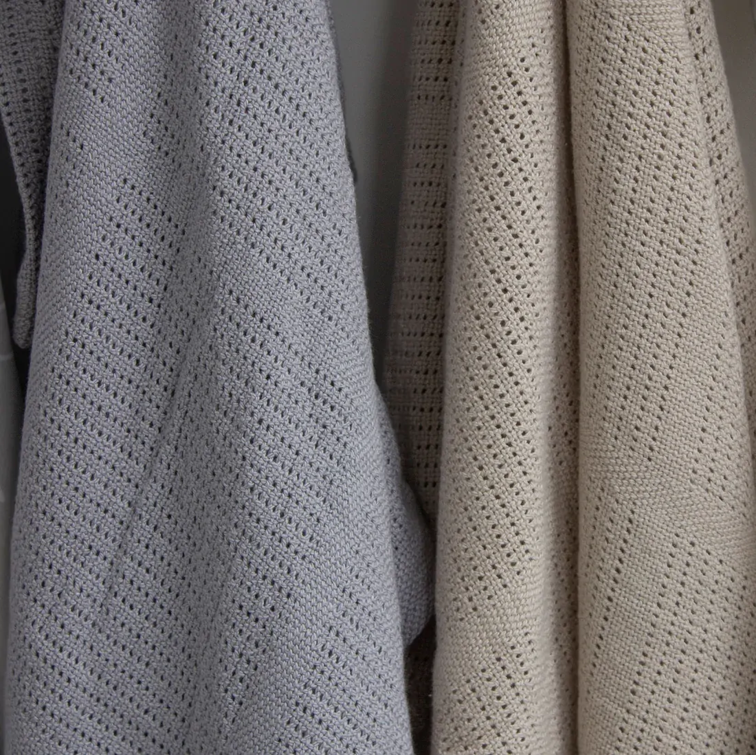 Crafted from a silky soft Cotton / Viscose Rayon from Bamboo blend in a classic airflow cellular weave, they are perfect for bedtime, outings or cuddle time.