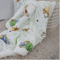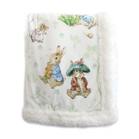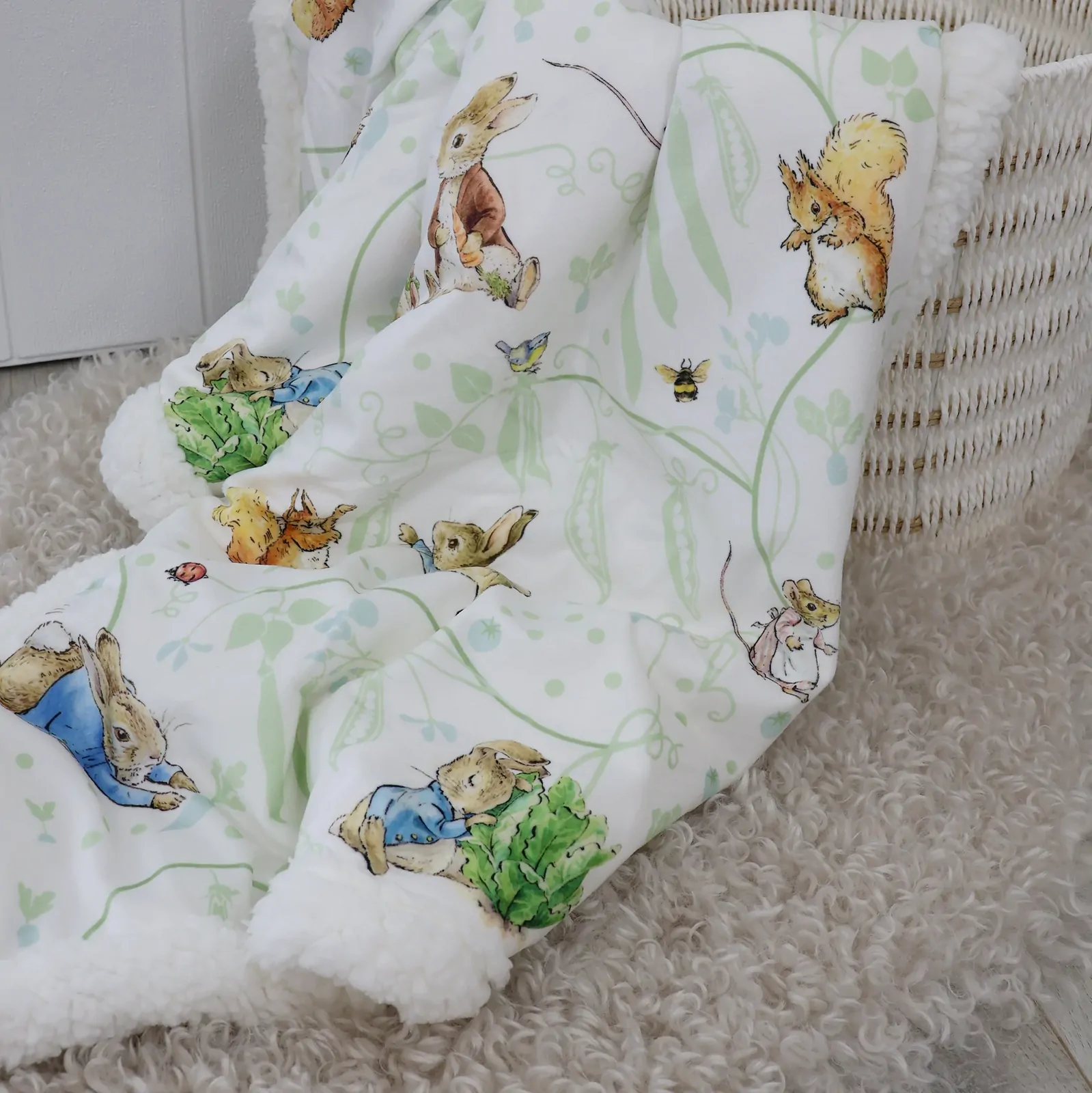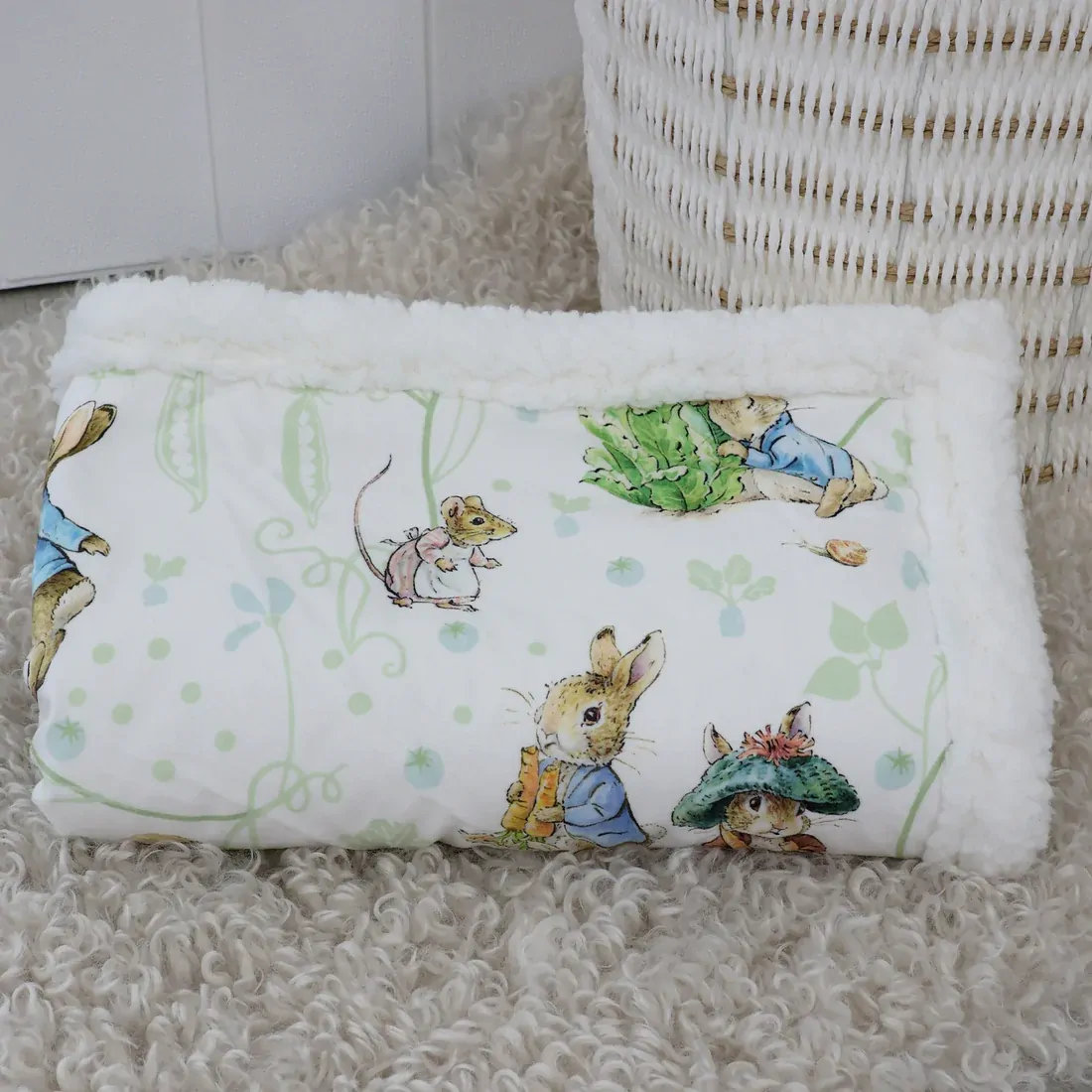 This gorgeous soft blanket features a plush velour front and cosy fleece lining. A practical size blanket for outings or cuddle time. A cute and cuddly addition for any nursery!