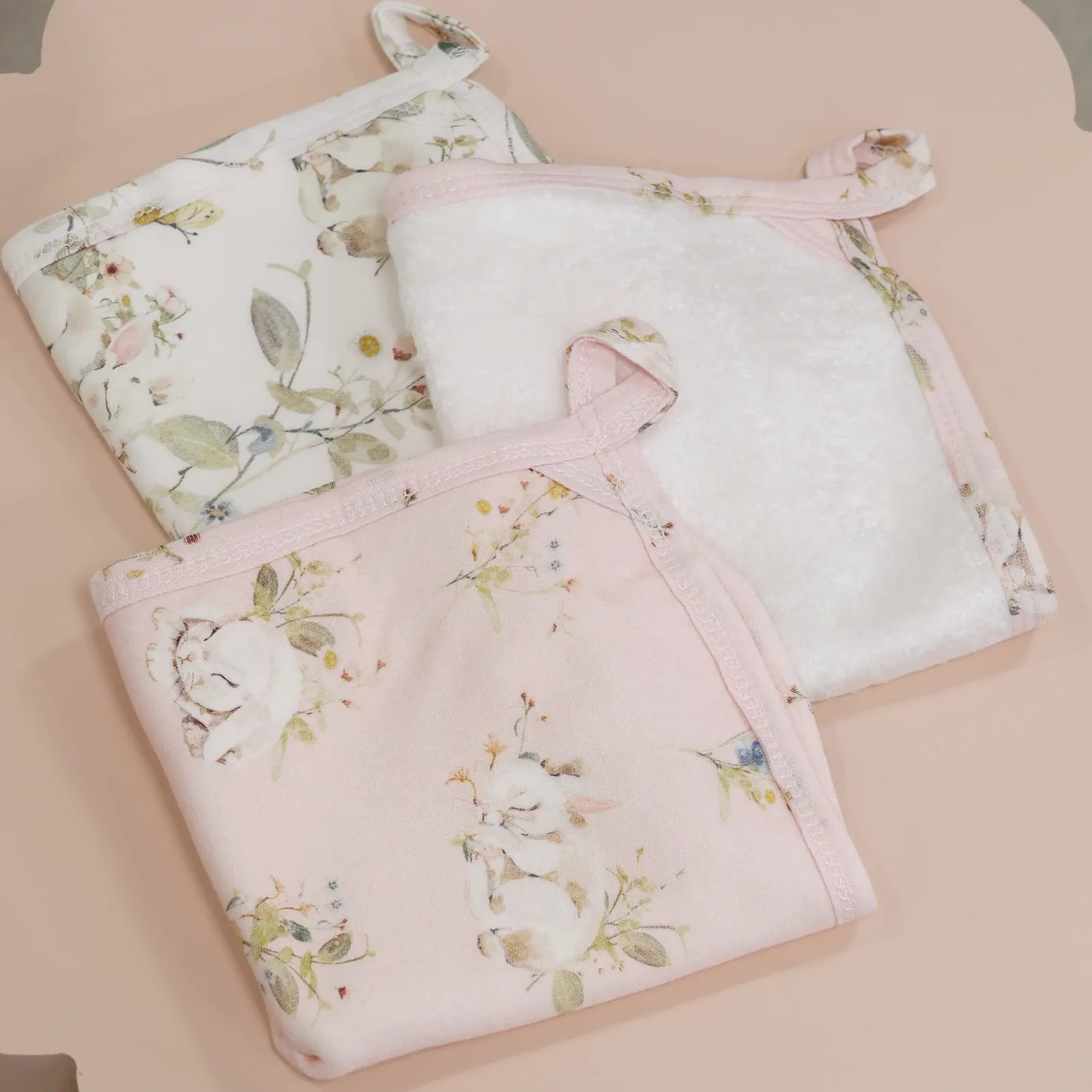 Crafted from soft towelling, this set of 3 wash cloths is the ideal bath time accessory. Perfect for use on baby’s delicate skin.