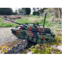 Inside, the model captures the tank’s sophisticated interior, featuring driver seats, a turret basket, ammunition shells, and an engine compartment with the MTU MB 873 Ka-501 engine, mirroring the heart of the real Leopard 2A6. The working suspension adds realistic movement, allowing the tank to roll over obstacles. With an open-up design, you can easily access and explore the interior, making it perfect for display or play.