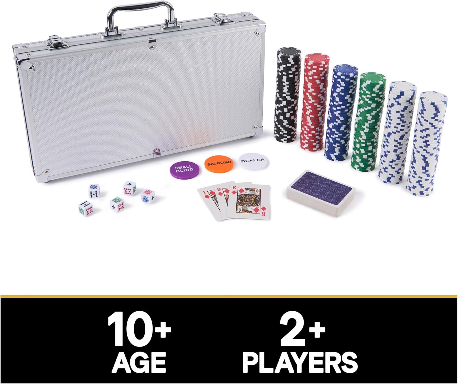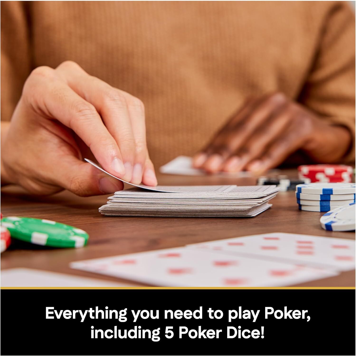• Everything You Need: For 2 or more players, ages 8 and up- this set includes 300 professional weight poker chips, 1 deck of cards, 1 dealer button, 2 betting buttons, 5 poker dice, and instructions