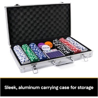 • Includes: 300 Poker Chips, 1 Deck of Playing Cards, Dealer Button, 2 Betting Buttons, 5 Poker Dice, Aluminum Carry Case, Instructions