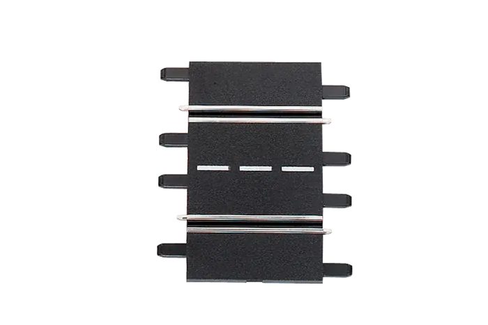 Between turnouts, track switches, curves, and other track sections, you often need straight tracks to connect them. This set is sure to help you out. It contains two 1/3 straight tracks, each 115 mm long. These relatively short pieces are perfect for bridging short track sections and avoiding the need to install overly long straight tracks between curves. The extensions are in 1:24 scale and can therefore be used to complement all racetracks in the same scale: Carrera DIGITAL 124, Carrera DIGITAL 132 and Carrera EVOLUTION. Keep expanding your race track and strive for one goal: To have the best racetrack among your friends at home and then have fun driving the most exciting races