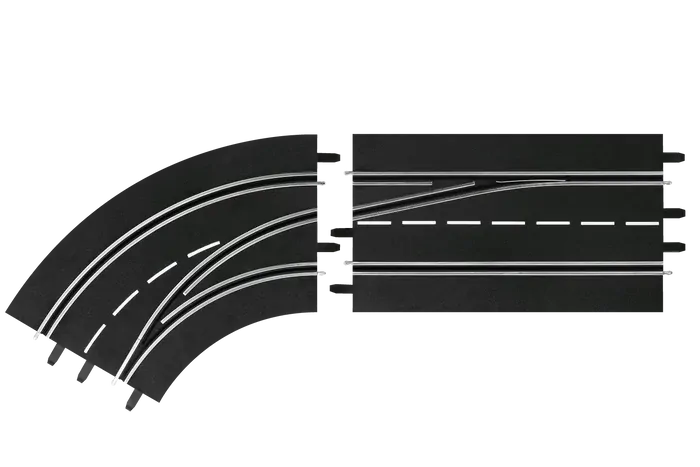 This left-hand curve is designed for overtaking and lane changes! Use it to your advantage and skillfully overtake your opponent in this curve. They will then be forced to follow behind you until the next opportunity to overtake arises. The lane-change curve consists of two track sections and allows for overtaking from the outer to the inner lane. The tracks are 1:24 scale and can Carrera DIGITAL 124 Carrera DIGITAL 132 Carrera EVOLUTIONbe used with digital racetracks such as the Carrera DIGITAL 124,Carrera DIGITAL 132, and the digitally retrofitted Carrera EVOLUTION. This expansion set adds extra fun to your racetrack.