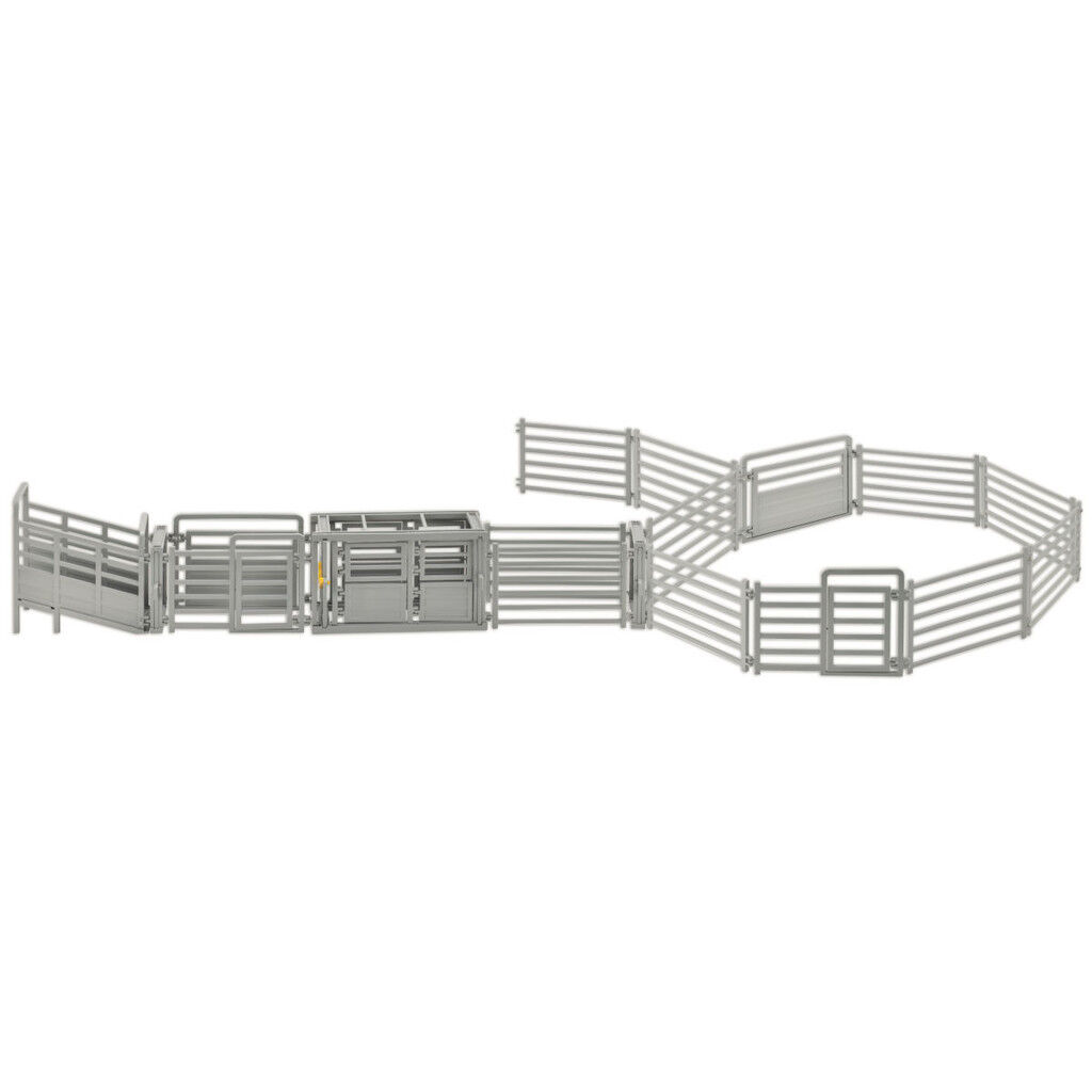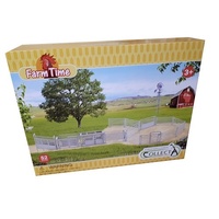 The CollectA Cattle Yard Set is a distinctive set for the farm life-enthusiast. The complete set consists of 18 individual parts such as cattle crush and loading ramp, man gate, slide gate and different panels. There are lots of different movable parts allowing doors and gates to be opened/closed. All the different cattle and horses from the CollectA farm and horse world so as wild life figurines can be involved to create a real-life scenario.