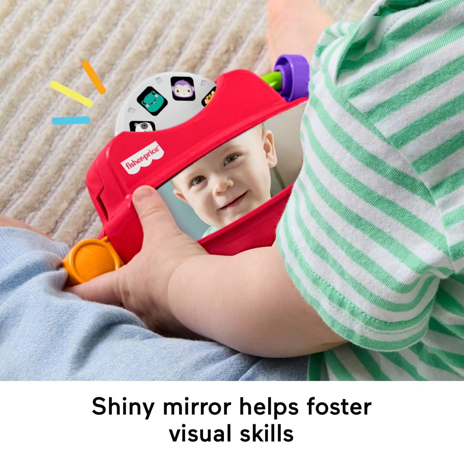 • Shiny mirror encourages visual skill development