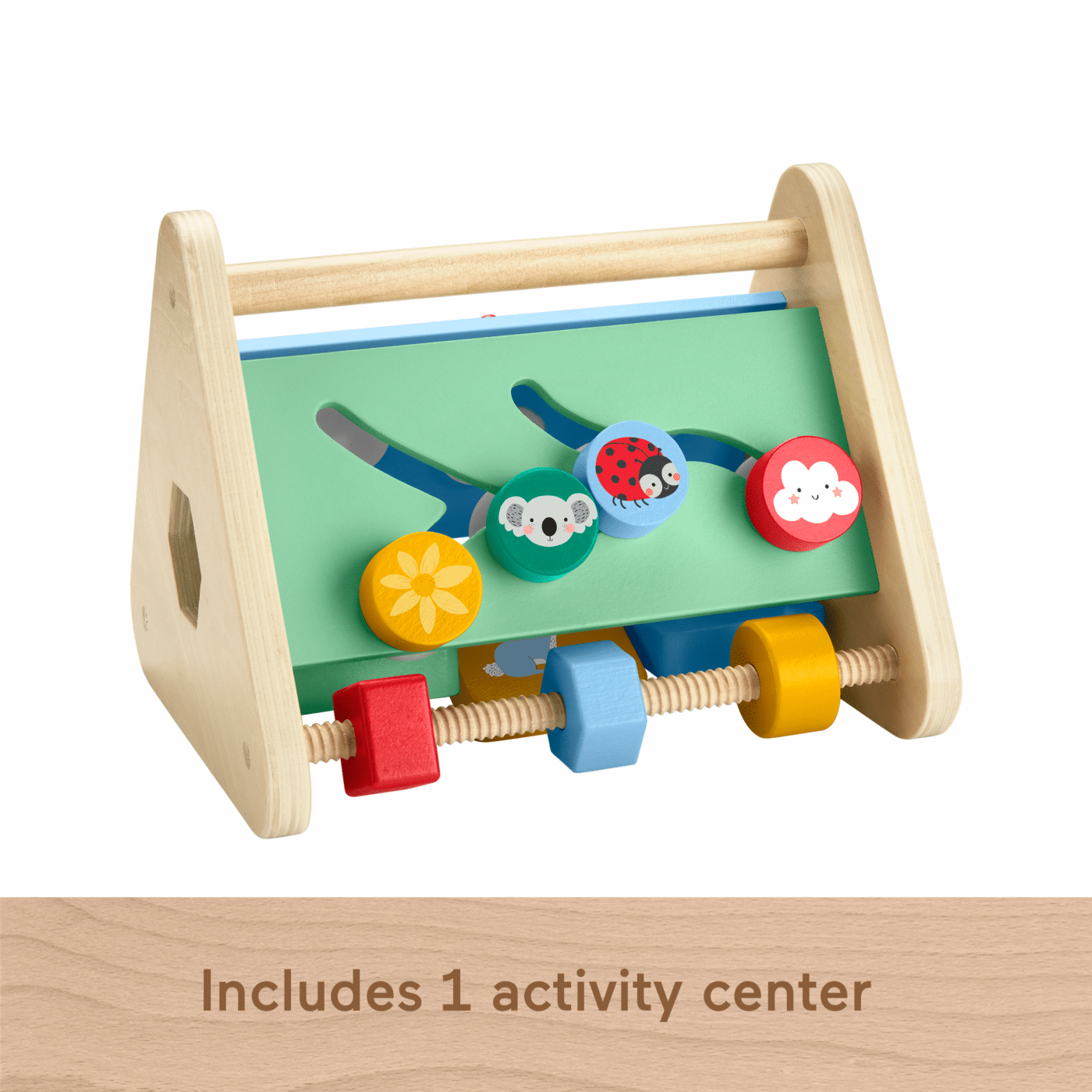 Give your baby an exciting hands-on learning experience with the Fisher Price Wooden Activity Triangle. Crafted from FSC®-certified wood, this durable toy is designed for little hands to explore and enjoy. Babies can spin gears, slide knobs, and twist shapes along the corkscrew rod, all while developing fine motor skills and problem-solving abilities.