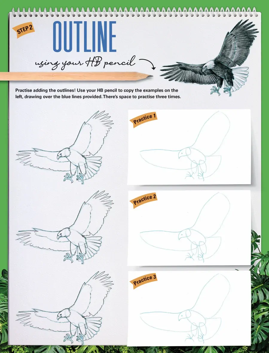 • The easy-to-follow 24-page practice pad includes step-by-step instructions and space to practise drawing.