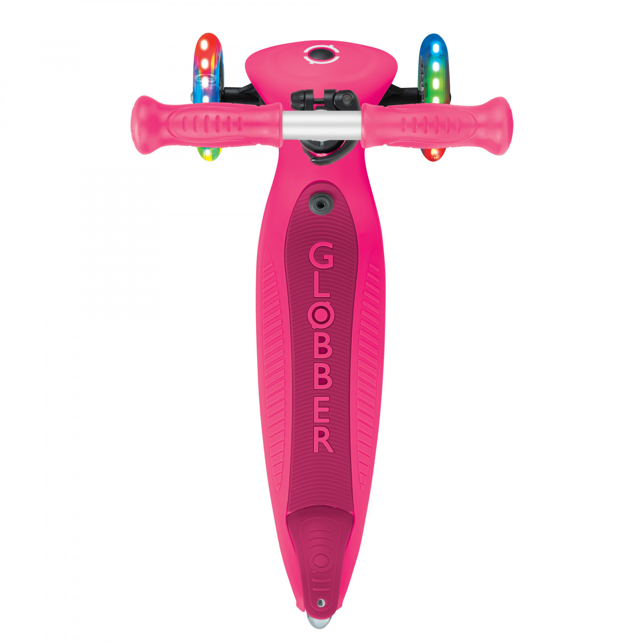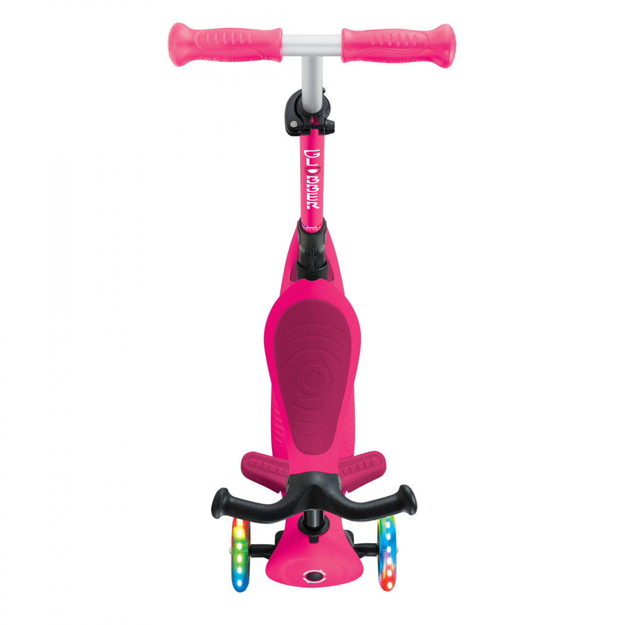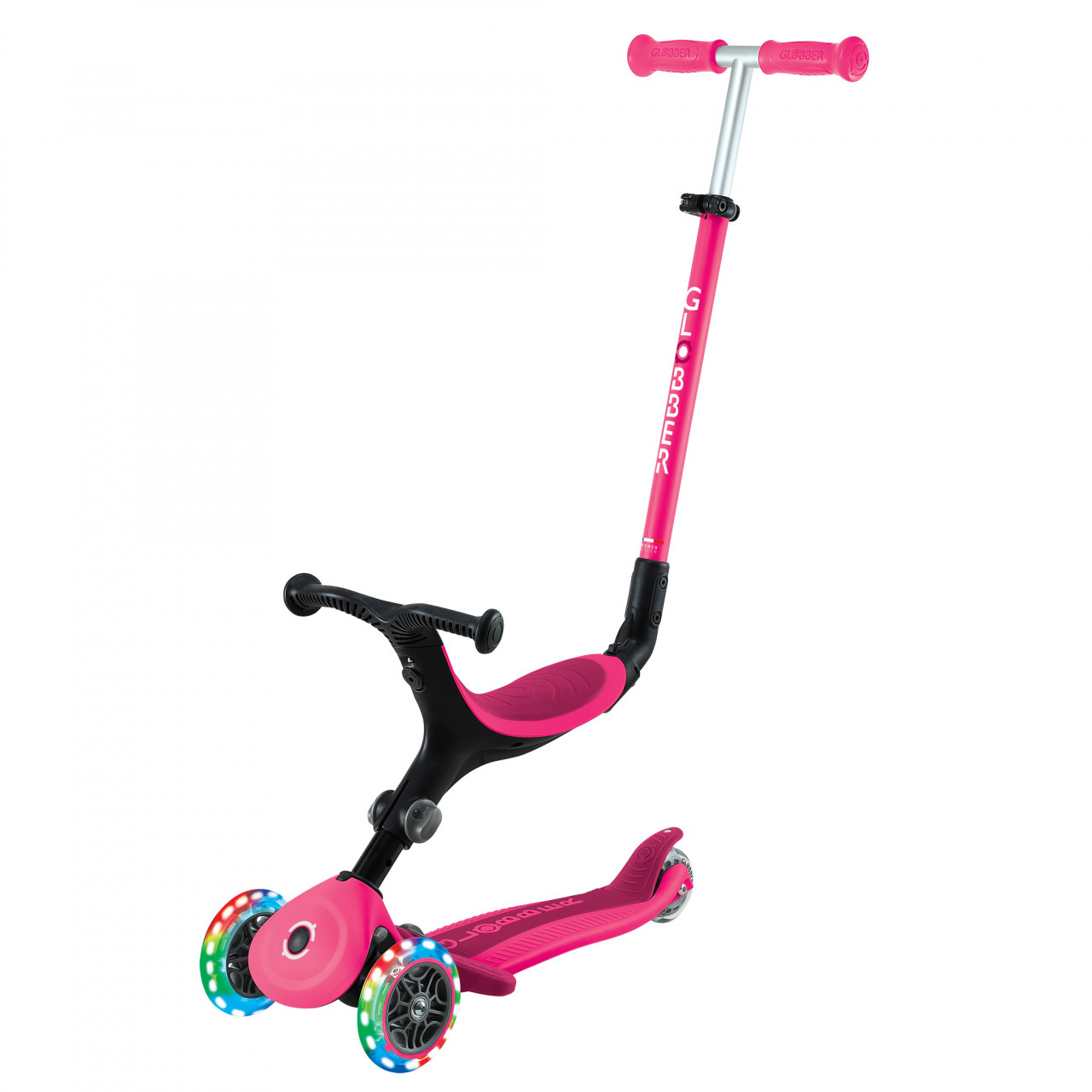 Globber’s GO•UP ACTIVE LIGHTS is a 3-wheel light-up foldable scooter with seat for toddlers and kids that transforms into a ride-on, walking bike, and toddler scooter. Ride-on and walking bike modes are designed for toddlers aged 15-36 months and scooter mode recommended for kids aged 3-9+. Enjoy never-ending playdates with a childhood buddy that’s here for the years to come!