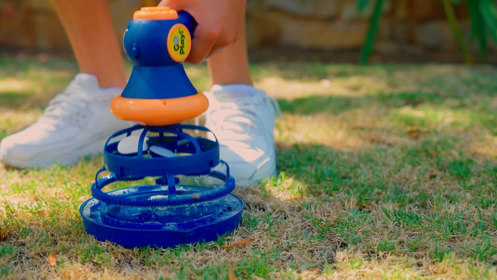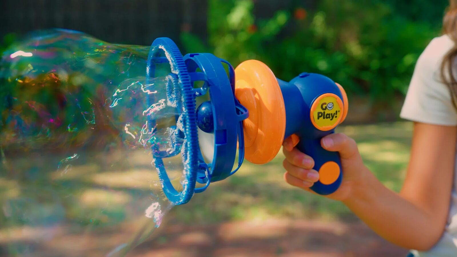 Designed for kids ages 5 and up, this bubble blower includes a 120ml bubble solution.