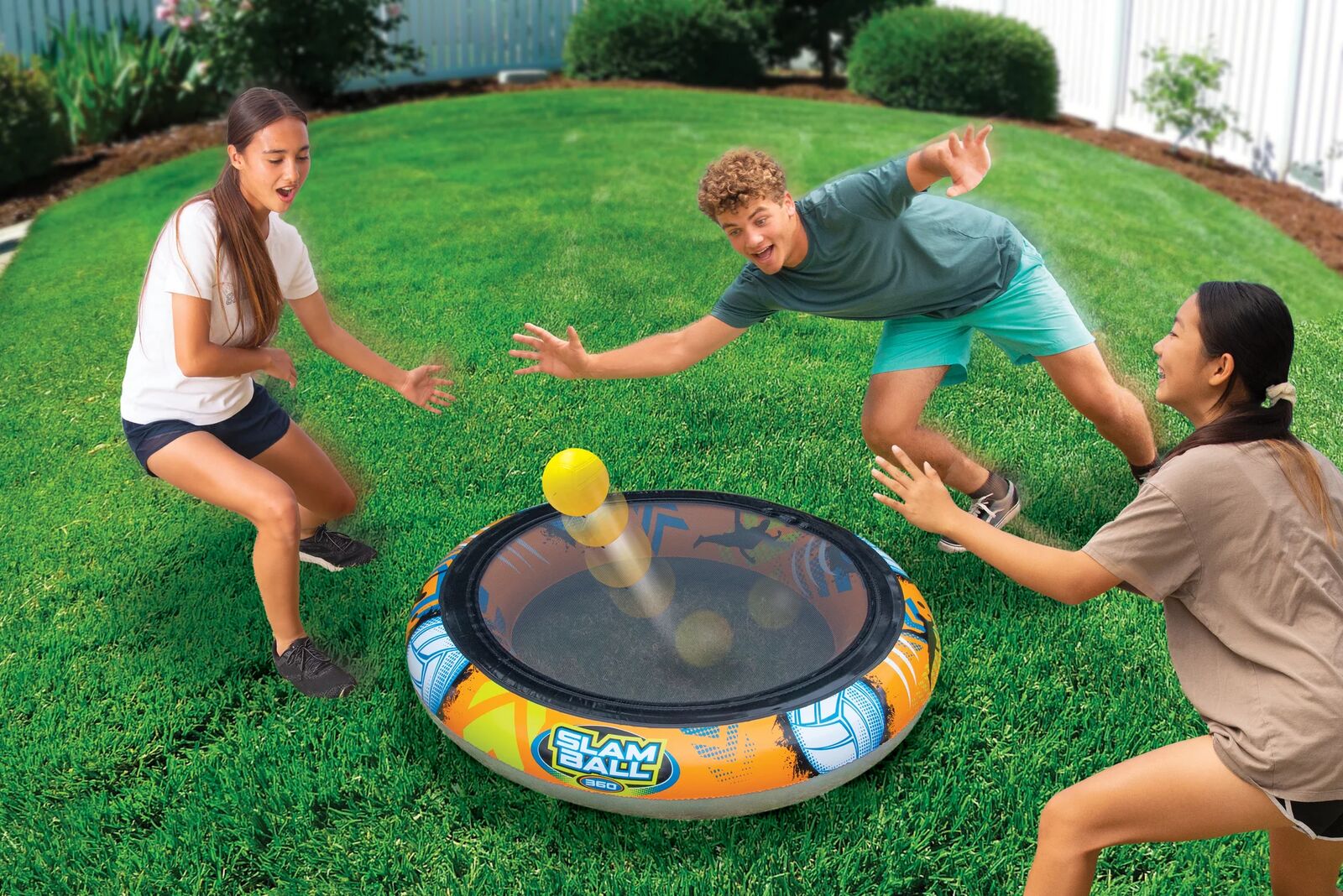 Go Play! Slam Ball 360° is a floating inflatable version of Spikeball for the pool.