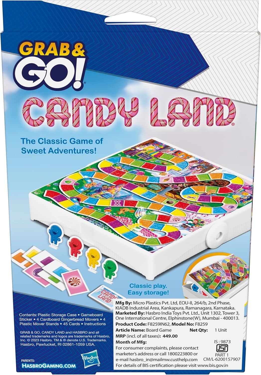 • PORTABLE VERSION OF CANDY LAND GAME: Same classic gameplay in a compact format! The Candy Land Grab and Go game is mini, portable version of the Candy Land game for fun on the run.