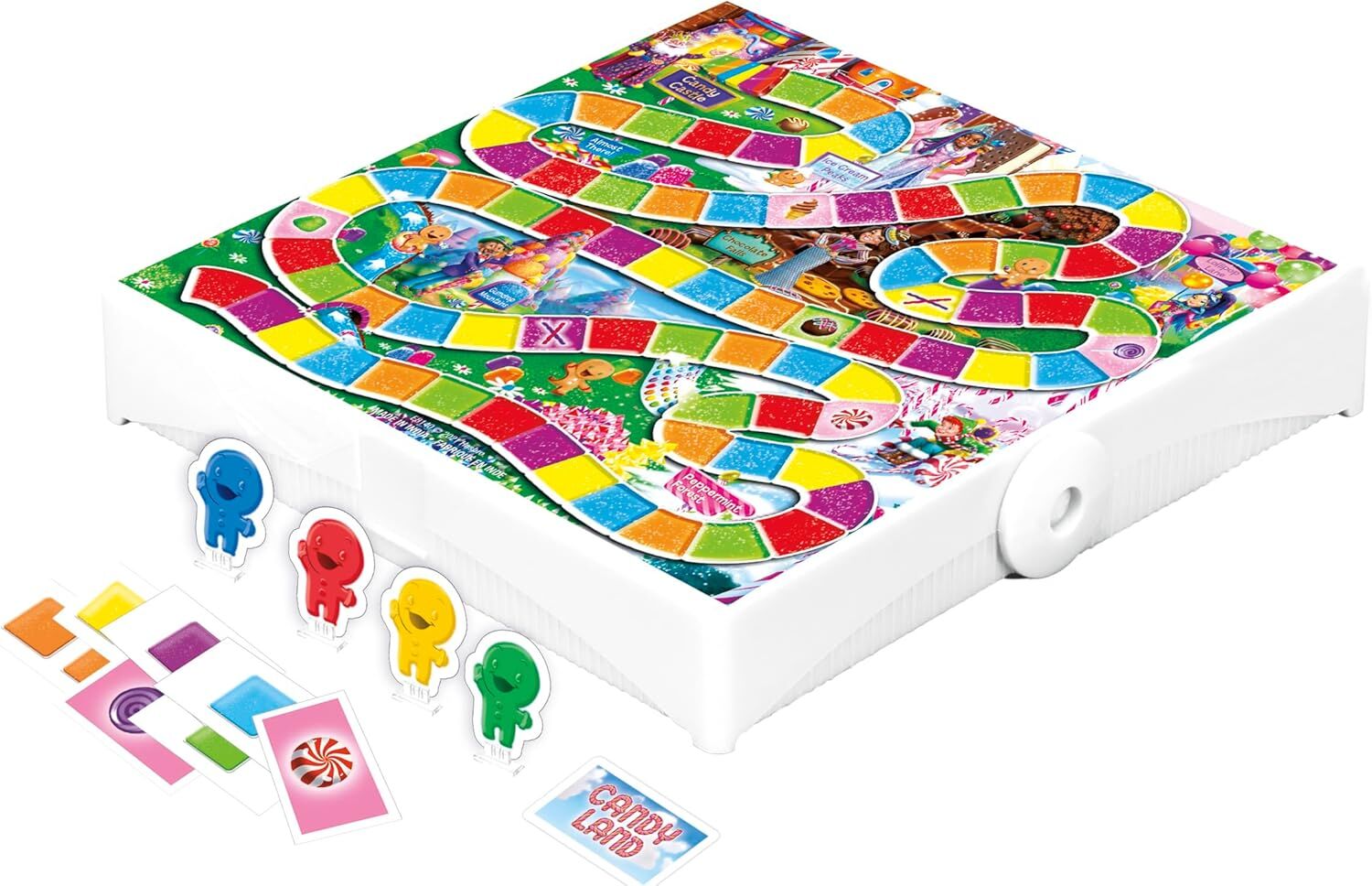 • FUN TRAVEL GAME FOR KIDS: Easy to set up, this travel-size Candy Land Grab and Go game for 2-4 players is an entertaining game for road trips, plane rides, train rides, camping trips, and vacations