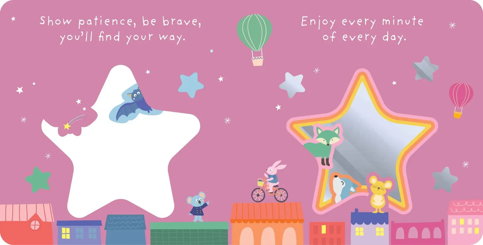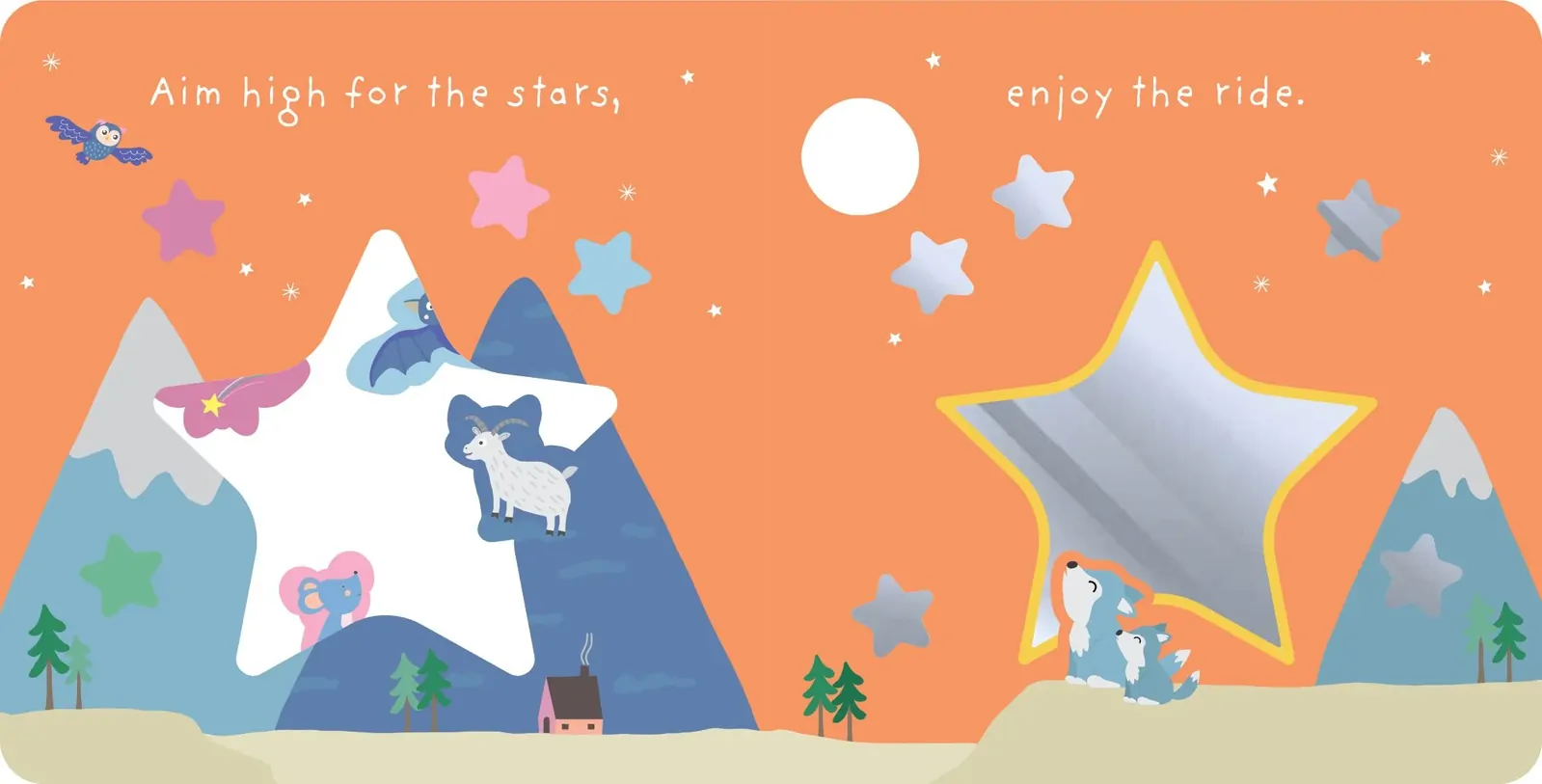 This charming board book is designed to be enjoyed during cosy reading time between little ones and their caregivers. The sweet rhyming text encourages children to aim high with the reassuring message that someone loving will always be there to support them. Little ones will be captivated by sweet illustrations of animal friends admiring the stars. Graduating die-cuts lead to a mirror on the final spread to reflect the real star of the story – the little one themselves.
