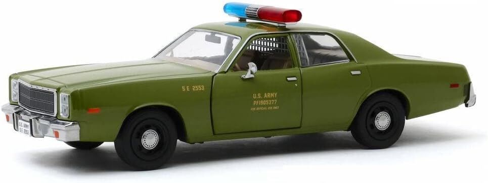 • Brand new 1/24 scale diecast car model of 1977 Plymouth Fury "U.S. Army Police" Army Green "The A-Team" (1983-1987) TV Series die cast model car by Greenlight.