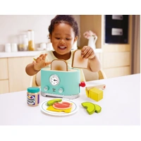 Hear a ticking timer and a satisfying “ding” as your toast pops up when it`s ready. With a modern look, stylish colours, and exciting accessories, there are endless ways to enjoy your toast. Have your child create a breakfast menu for their “cafe” – they can write down different types of toppings available for their toast.