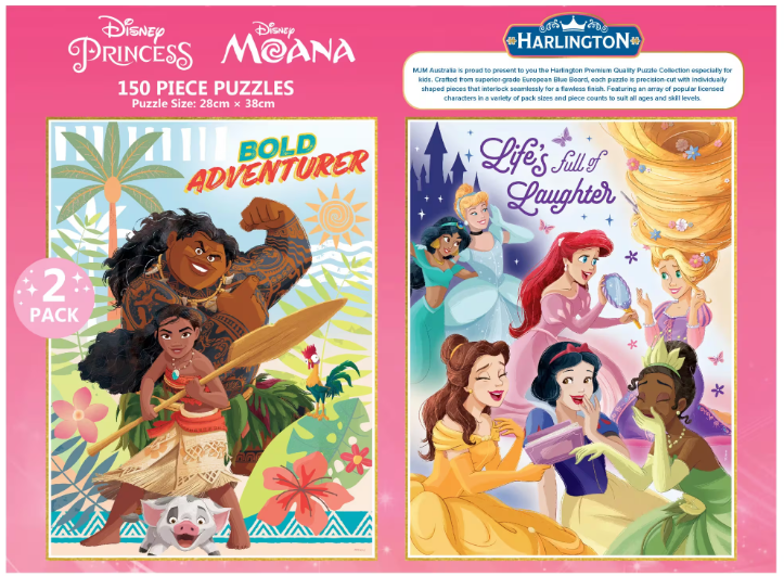 Bring your child’s favourite characters to life with the Harlington Kids Puzzle Collection. This set includes two delightful puzzles, each with 150 pieces specially designed to connect smoothly and create bright, engaging scenes. Made from high-quality European Blue Board, these puzzles are ideal for little hands and growing minds. Children will develop important skills like hand-eye coordination, memory and concentration as they enjoy piecing together each puzzle. Let imagination and learning flourish with this fun screen-free activity. Add a touch of adventure to every playtime and turn quiet moments into happy memories by choosing this charming puzzle set.