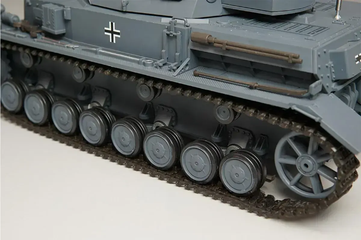 The tank's robust tracks and powerful drive system ensure unstoppable performance on various terrains. Immerse yourself in the heat of battle with the realistic smoke and sound effects, bringing the power of the Panzer IV to life!