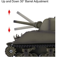 Experience the thrill of commanding this historic war machine as you manoeuvre the M4A3 Sherman across any terrain. With its 320° rotating turret, adjustable gun elevation, and realistic recoil action, you'll dominate the battlefield. The tank's robust metal tracks and powerful drive system ensure unstoppable performance, while the realistic smoke and sound effects immerse you in the heart of historic combat.