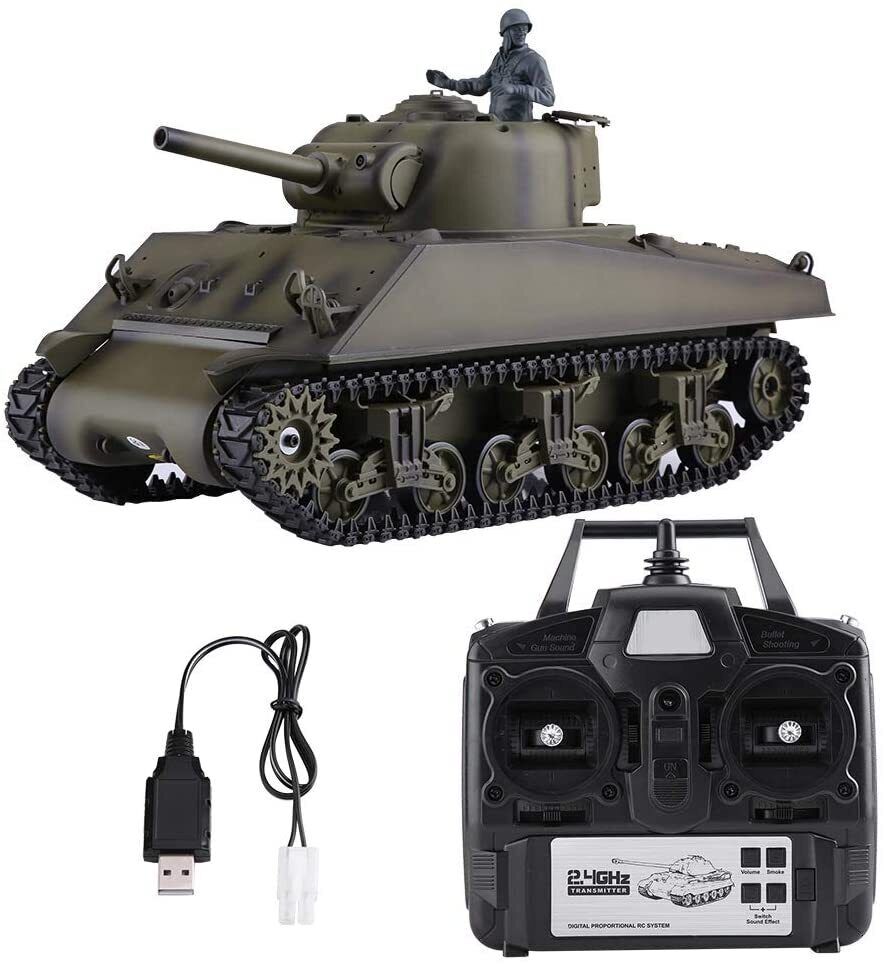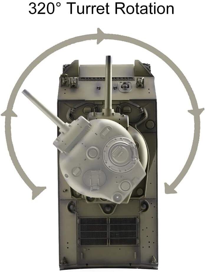 Evolved from previous medium and light tanks, the M4 Sherman was the primary tank used by the United States during World War II. As a vivid replica, this RC tank with independent torsion bar suspension can clear obstacles and travel up steep hills easily.