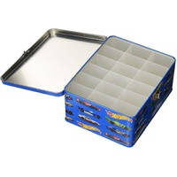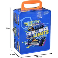 • The smart metal case in the stylish Hot Wheels design is not only strong but is also a practical storage solution for young racing fans