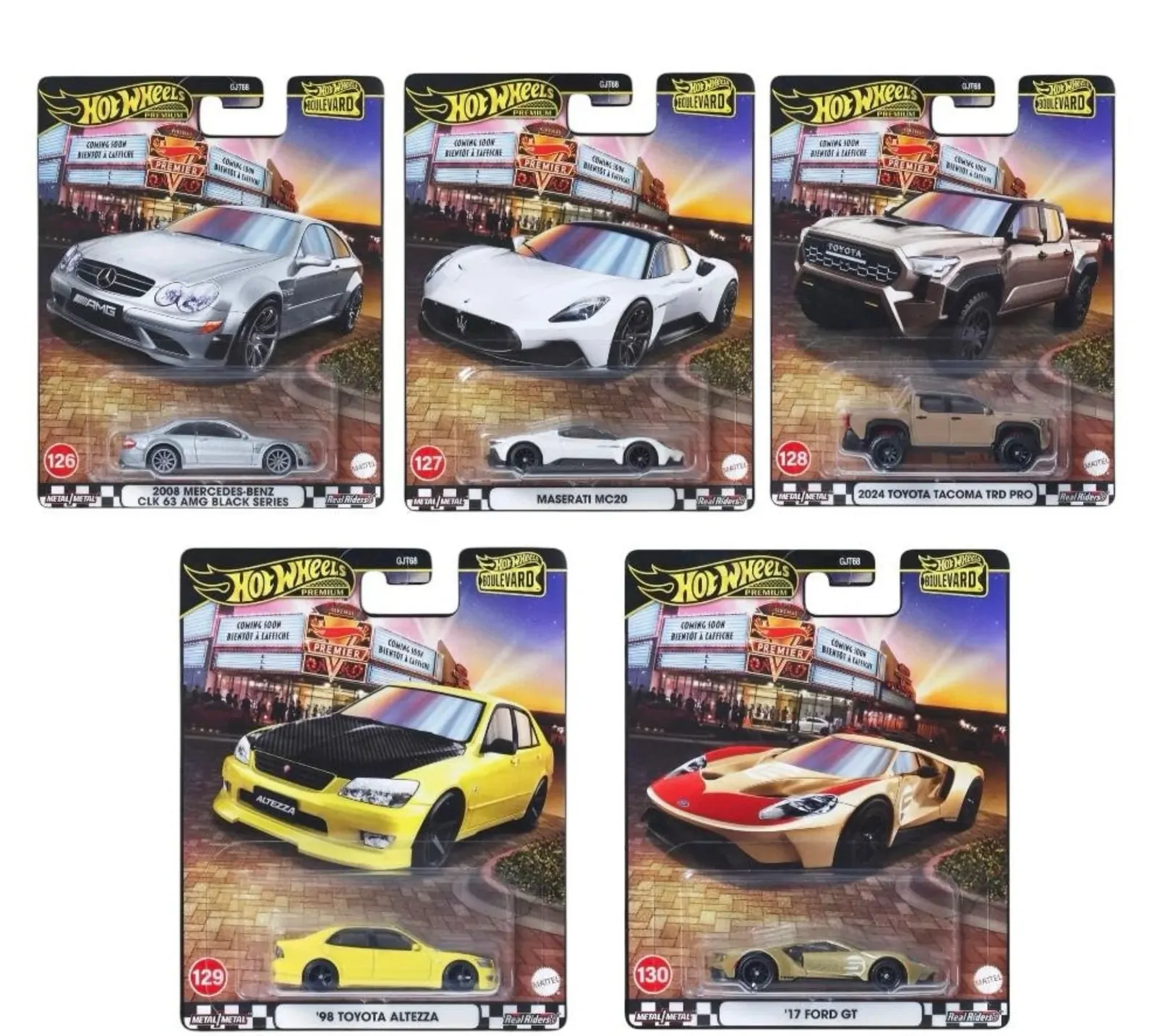 • Complete set of 5 from the Hot Wheels Premium Boulevard Series (Numbers 126–130)
