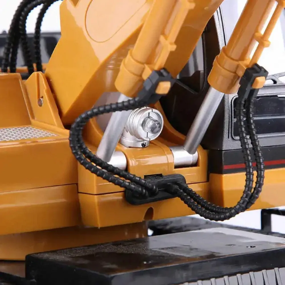 This 1:16 scale model combines realistic design and advanced functionality, offering a highly immersive play experience. Equipped with moveable arms, a rotating worktable, simulated sound effects, and LED lights, this excavator delivers dynamic action that mimics real-world construction machinery.