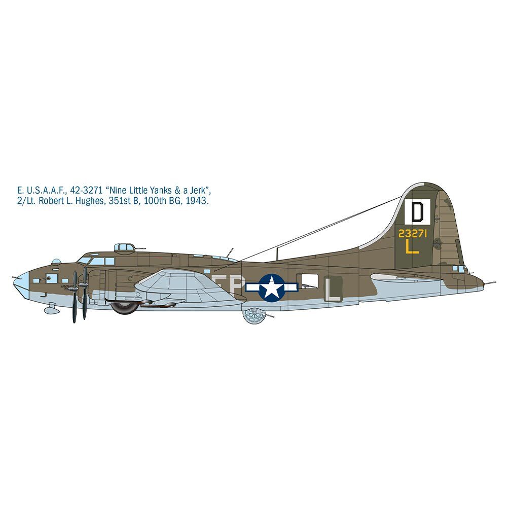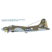 The Boeing B-17 "Flying Fortress" is a four-engine heavy bomber that was extensively employed by the United States Army Air Forces during World War II. It was produced in large numbers and saw widespread use, particularly by the 8th Air Force, for daytime strategic bombing missions over the European front, often with the support of long-range fighter escorts. The “F” variant marked a significant advancement over earlier models. The Boeing B-17F featured extended operational range, the ability to carry a substantial offensive payload, and enhanced defensive armament consisting of ten .50 calibre machine guns. One of the most appreciated features among flight crews was the B-17’s remarkable ability to return to base despite sustaining heavy structural damage from enemy fire.