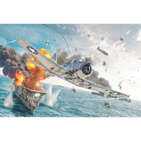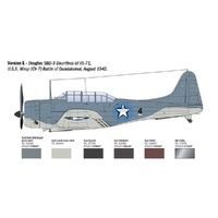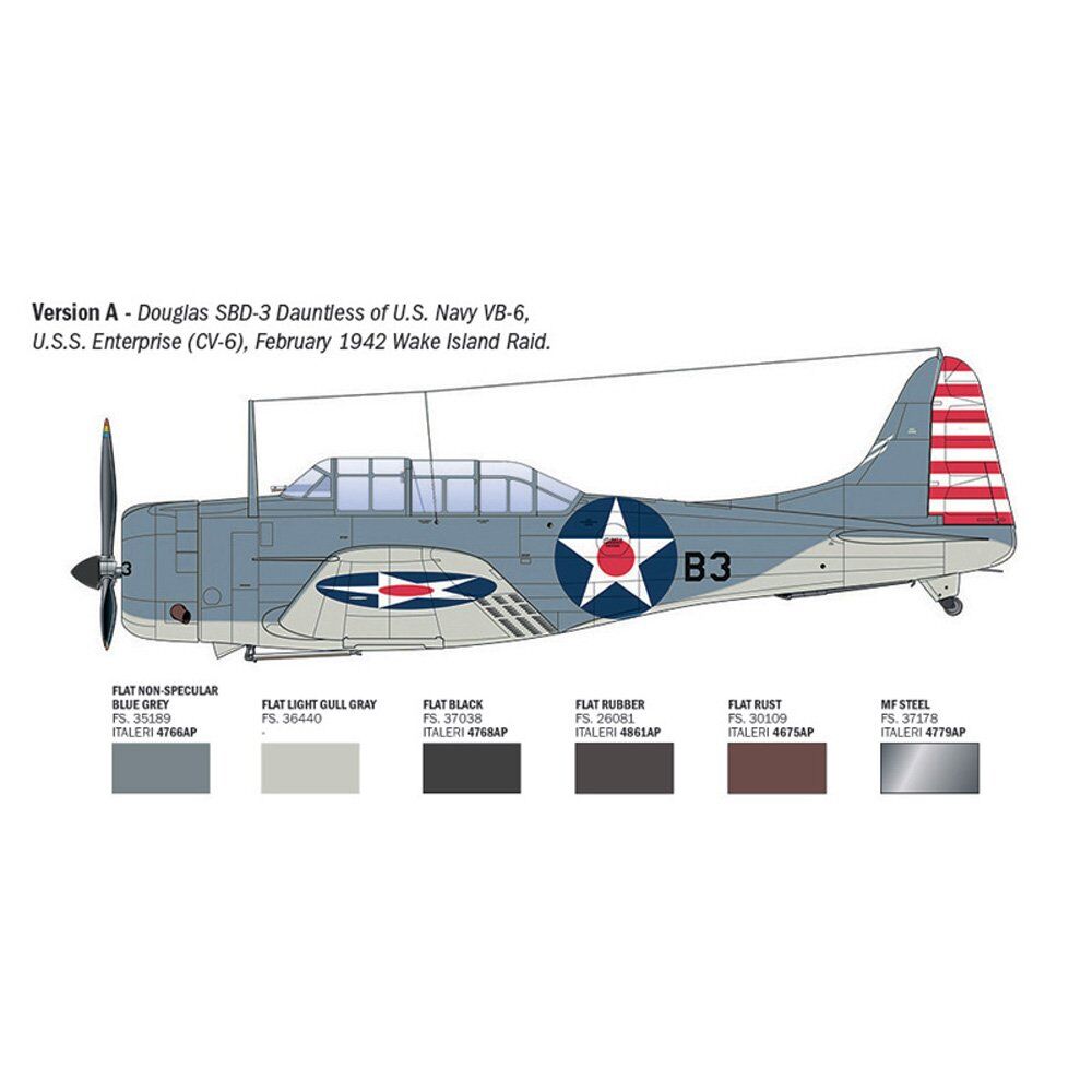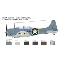 The Douglas SBD “Dauntless” was a single-engine, low-wing aircraft and the most widely used carrier-based dive bomber by the U.S. Navy during World War II. Entering active service with American flight units in 1941, it could be employed for both reconnaissance and dive bombing missions. The SBD-3 was the true hero of the Battle of Midway (June 1942), a turning point in the Pacific War, where it played a key role in the sinking of Japanese aircraft carriers. Powered by a Wright R-1820 Cyclone radial engine, it could reach a top speed of 410 km/h (255 mph). The SBD-3 was capable of carrying nearly 2,000 kg (4,400 lbs) of bombs. It was also equipped with two forward-firing 12.7 mm (.50 cal) machine guns and two rear-facing 7.62 mm (.30 cal) machine guns. It was highly appreciated by crews for its ruggedness and solid construction.
