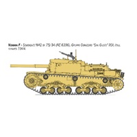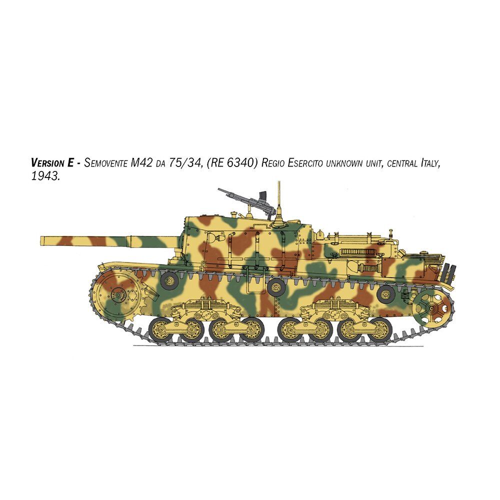 At the end of the 1930’s the Italian Regio Esercito (Royal Italian Army) began to deploy self-propelled artillery guns to provide support for tanks and infantry units. The ‘Semovente’ 75/18 was developed on the back of the ‘M’ series medium tank hull and soon became the most feared Italian armored vehicle. In addition to its primary artillery role, the 75mm howitzer installed in the casemate proved to be a highly effective anti-tank weapon, capable of destroying even the most powerful and heavily armored British and American tanks. During the war however, the Italian Regio Esercito requested the development of a version with increased offensive capability. The 75/34 cannon which was originally designed for an anti-tank role, was fitted to the hull of the M42 self-propelled tank. The initial units of which, were distributed to the Italian Army in the spring of 1943. As a result of its effective operational performance, it was also used by German anti-tank battalions after the armistice in September 1943.