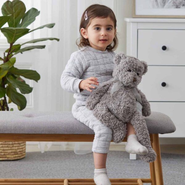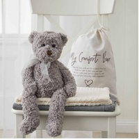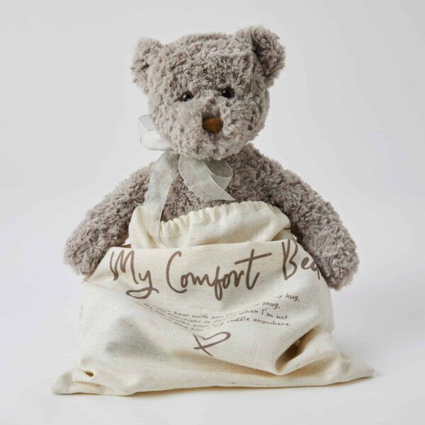 Darcy the Comfort Bear is made from super soft ruffle fur and provides comfort with his weighted body, arms and longer legs. He comes in a cotton travel pouch so he can accompany little one’s everywhere.