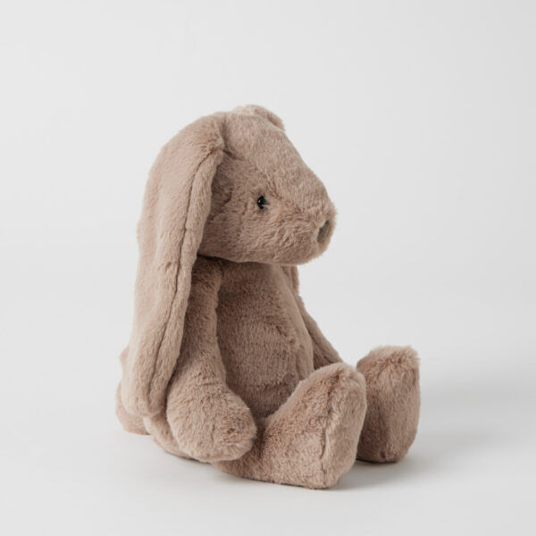 This lovable bunny is the perfect companion for newborns and toddlers! Made from ultra-plush fabrics and child-safe trimmings, little ones will love the feel of its irresistibly soft fur, making it great for cuddles, and its beanie bottom will help it sit upright during playtime or when displayed on the shelf. This bunny also loves going on adventures and can be carried around by its floppy ears, which are the perfect size for little hands to hold.