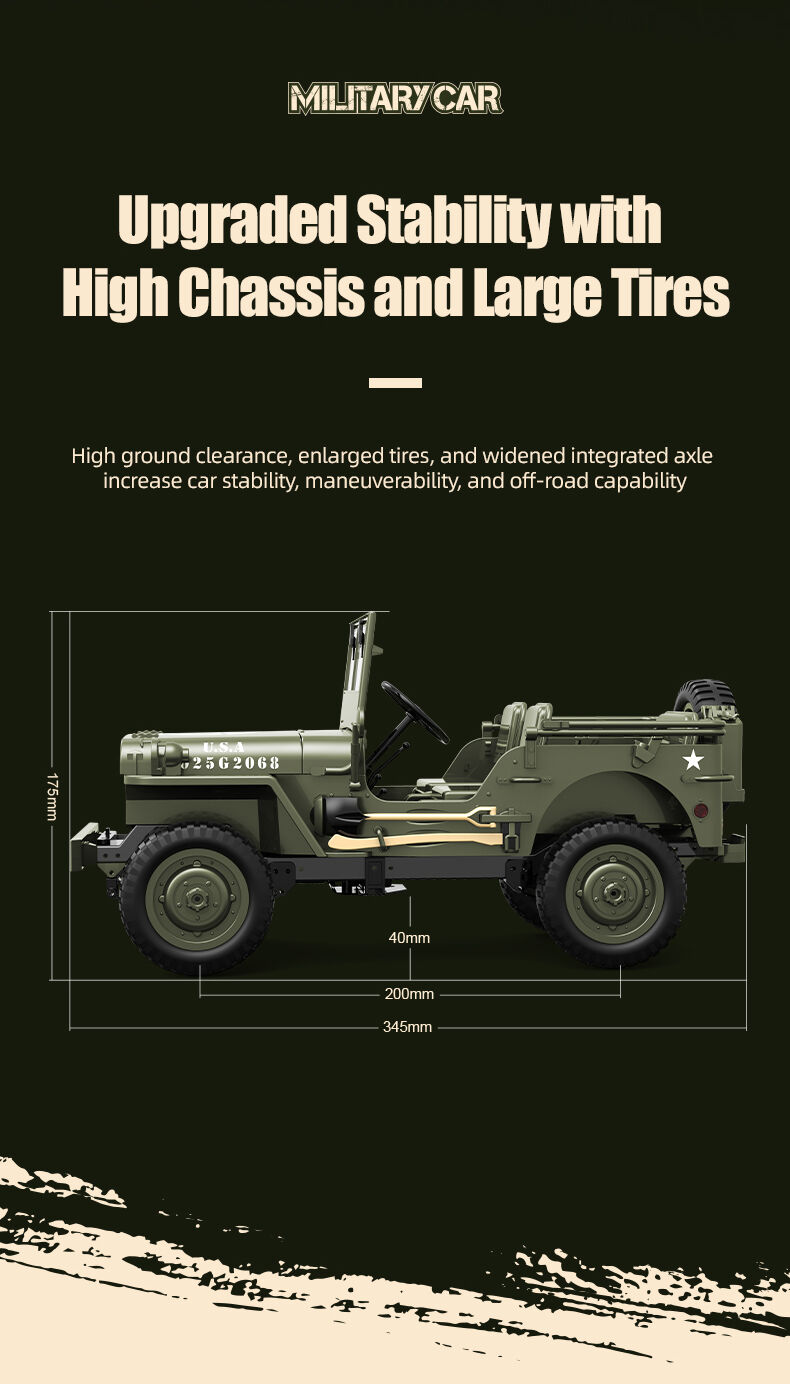 • High-Quality Construction: From the adjustable hood to the lifelike undercarriage, this RC Jeep is built with attention to detail.