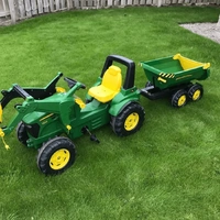 Make The John Deere Rolly Kid Trailer Halfpipe the cornerstone of your child's farm adventures! This heavy-duty trailer, complete with a large, sturdy body tipper and twin axles, is designed to withstand the rigours of imaginative play. With its hand-operated tipping action and deep sides, it's perfect for hauling small loads like sand and soil, fostering a realistic farming experience.