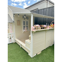 • Pre-painted, Non Toxic Paint as shown. Our Cubbies are Painted with a Water Based Temporary Paint. We still suggest painting your Cubby House with a durable outdoor paint from Taubmans for longevity, within 4 Weeks of Outdoor Use.
