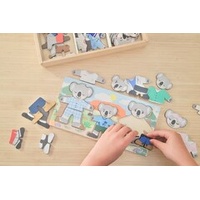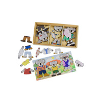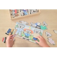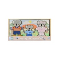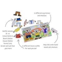 Help little ones explore emotions, everyday life, and imaginative play with this charming Dressing Koala Bear Family set. Featuring three adorable wooden koalas, children can mix and match outfits and facial expressions to create endless stories inspired by real life in Australia. Each koala comes with interchangeable faces showing happy, sad, angry, sleepy, surprised, and confused expressions, supporting early emotional recognition and language development. The set includes six distinct Aussie-themed outfits, from a school uniform to tradie and professional attire, allowing children to role-play familiar people and situations they see every day. Designed to feel close to home, these relatable characters help children make meaningful connections between play and their own world. Crafted from FSC-certified timber and thoughtfully designed in Australia, all pieces store neatly in a sturdy wooden box, making tidy-up simple and playtime inviting. This beautifully made set encourages fine motor skills, empathy, imagination, and confidence through open-ended, hands-on play